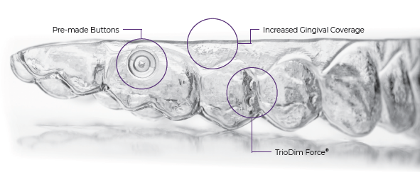 The result: aligners that are easier to insert and remove, more discreet for the patient, and less time-consuming for clinicians. With fewer chairside procedures and improved comfort, TrioDim Force™ Technology offers a more efficient path to a beautifully aligned smile.